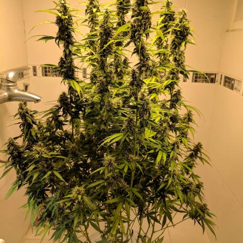 Начиная с девятой недели гровер заменил свет, установив LED лампу жёлтого спектра мощностью 370 Вт. Растиха еще немного прибавила в размере, вытянувшись на 10 сантиметров. Шишки продолжали набирать массу, но, что примечательно, практически не пахли. К десятой неделе рост куста вверх прекратился. Гровер изменил схему питания: