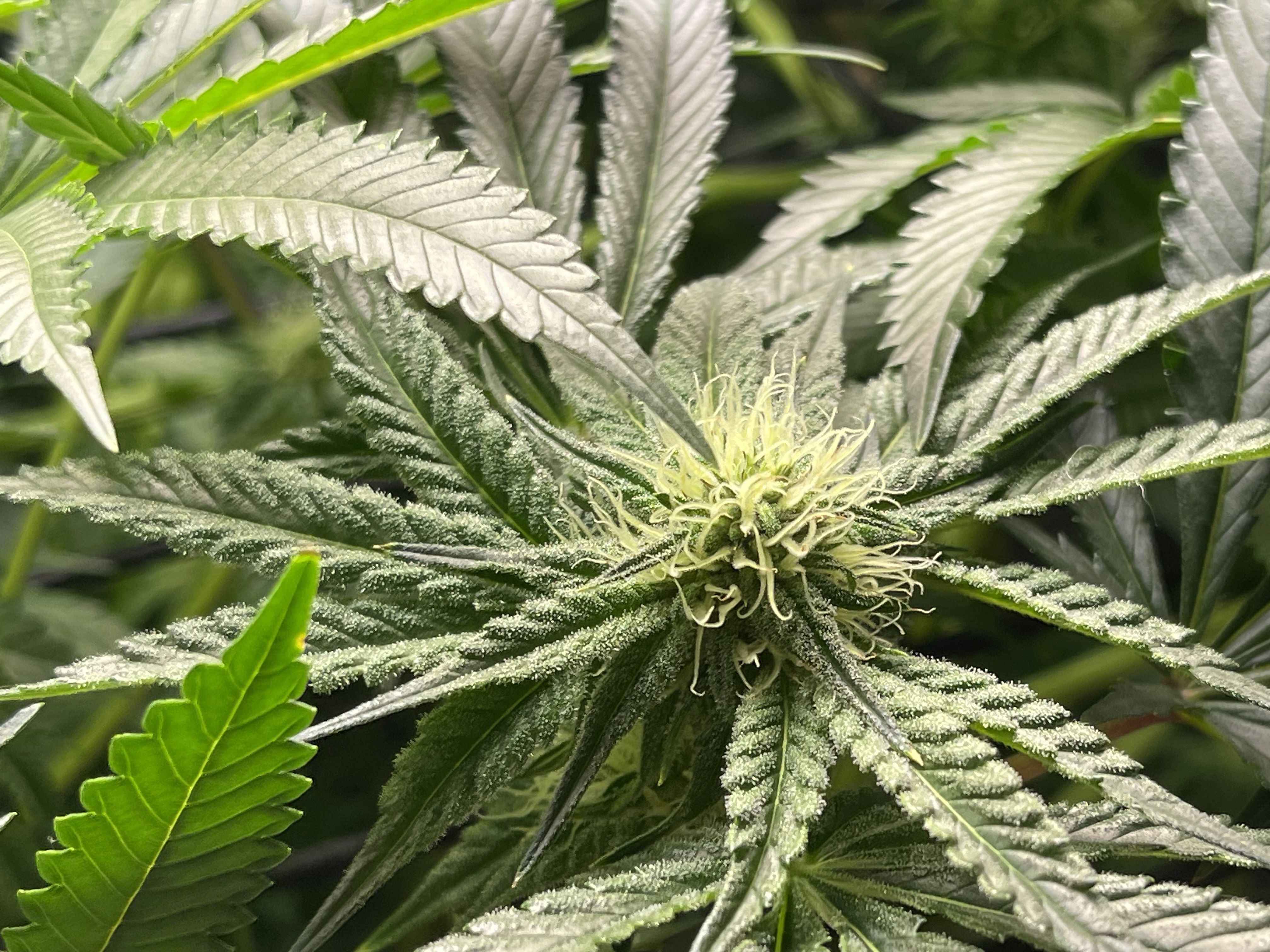 Шишули начинают пухнуть и наливаться сахаром , маленькие трихомки , как маленькие детки смотрят своими глазенками и тянуться . Шишки достаточно липкие , на неделе сделала дефолиацию и убрала веерные без сахара ! Которые мешали пропускать свет и воздух. Сахарные еще пригодятся сделать гаш.