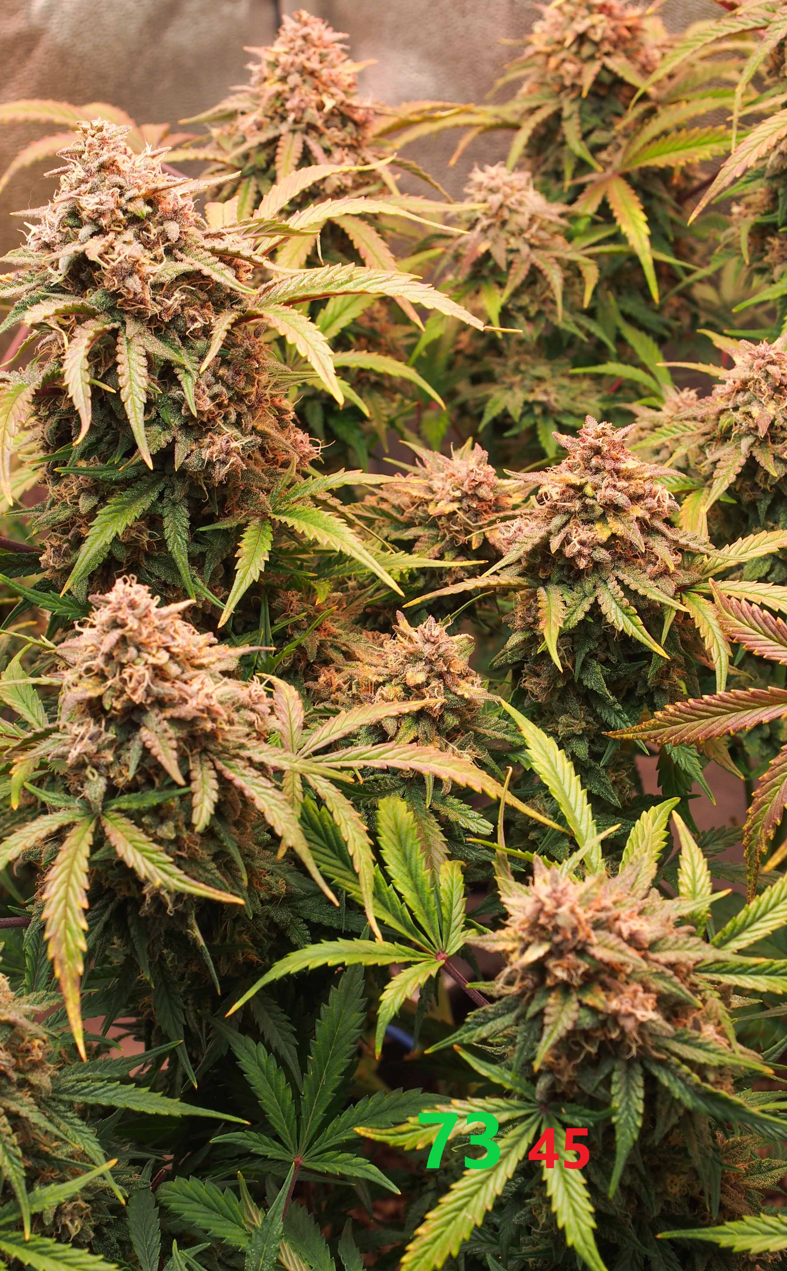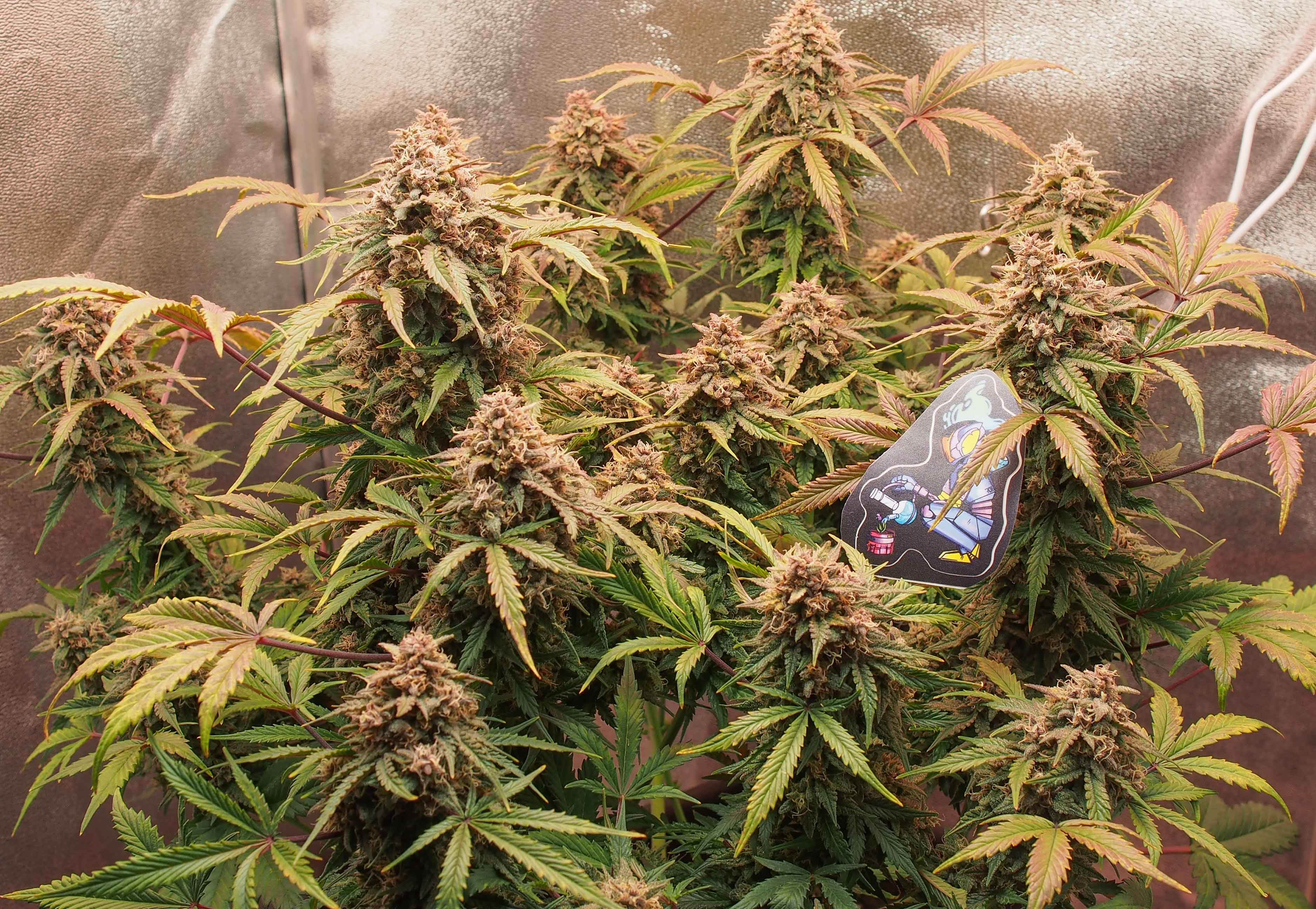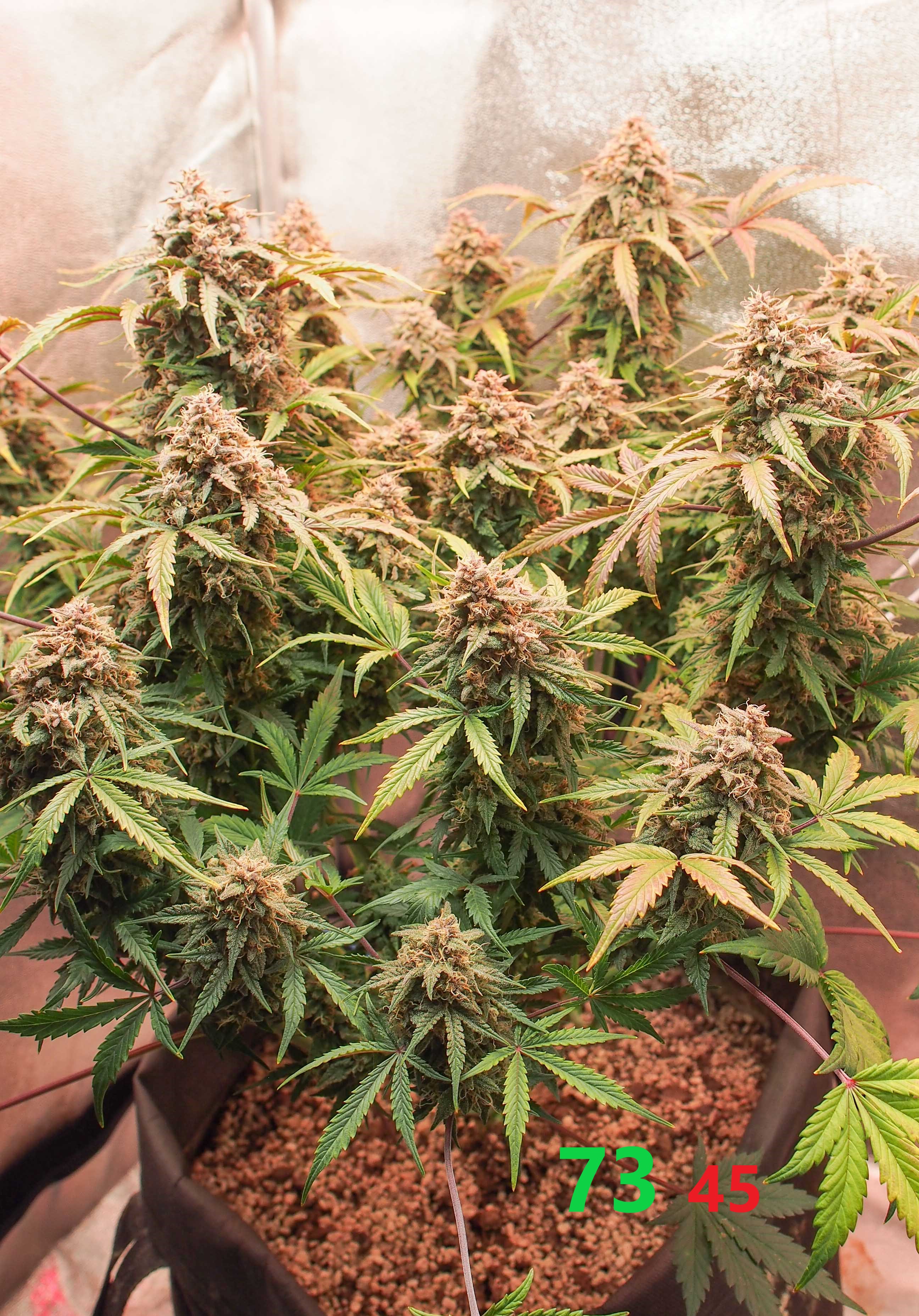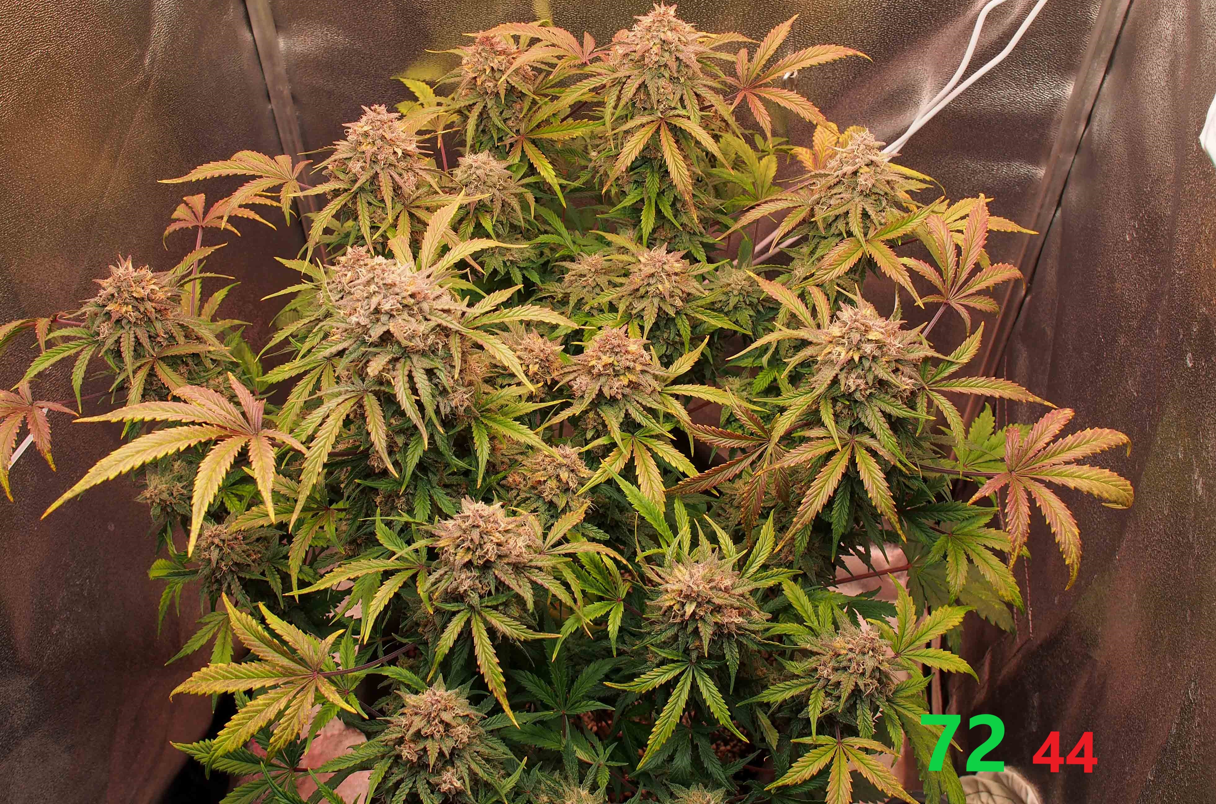 Трихомы выложу чуть позже, но большинство уже молочные, на центральных колах уже попадаются янтарные.