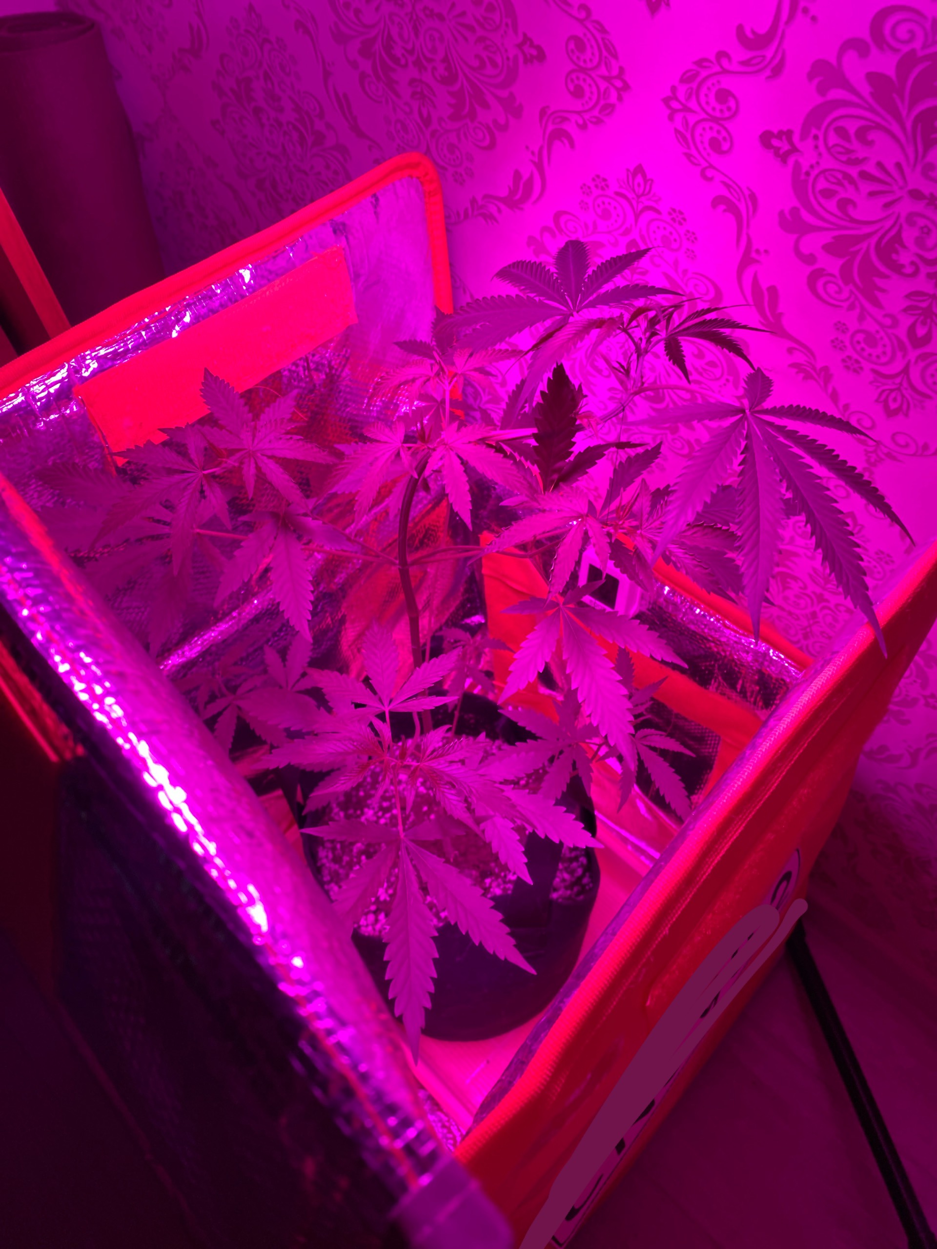 Я обзавелся сутеренской лампой на "100 Ватт", и оставив один куст пульнул его в термосумку от яндекса. Так он у меня там и простоял 6 недель.