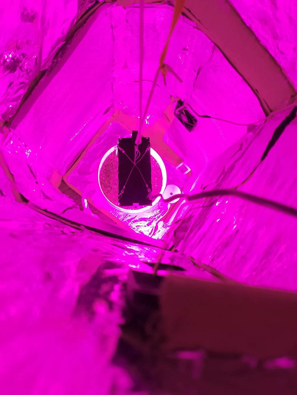 Почему решил начать ростить? Просто попалось пара видео и меня зацепило как люди ухаживают за кустами как за ребенком. Стало интересно начал читать, интересоваться, разбираться во всем этом. Так и решил что хочу попробовать себя в этом деле. Соорудил "бокс" если можно так его назвать)) из коробок которые стояли и мешались, изнутри обклеил фальгой и пенофилом(вроде так называется), снизу на уровне стебля поставил кулер 8см с макс. оборотами 2100(как по мне для моих целей подойдет вполне), сверху прям под потолком так же поставил такой же кулер на выдув подключил к одному проводу юсб и заряднику от мобильника на 33v и 5А, да они работают не на максимум но пока что этого хватает с головой, увлажнитель самый дешман за 250руб с озона так же как и лампа как многие ее здесь называют "сутенерка" на 50в замерил через приложение, от ведра до лампы 15см показывает 18000-19000, но я уже дозаказал такую же "сутенерку" на 100в и борд на 36в чтобы был хоть какой то холодный свет(Да я понимаю что свет ужасный и что нужно покупать минифермер борды с самсунг диодами и тд и тд., но моя цель за максимально сжатый бюджет вырастить средний куст.) так же поставил термометр гагрометр так же самый дешман. Ведро обычная пластамаса 5л. с дырами снизу для дренажа, почва для розы и лимона и перлит, в пропорциях 50/50. Так же делал пролив почвы 2или 3 литра воды и зачем замешал туда азафоску с npk 16/16/16. Кислотность не скажу т.к прибор который пришел оказался браком, возвращать спорить покупать новый впадлу, будем надеятся на удачу). Вроде все рассказал, прошу не судить и не кидаться камнями за сборку и условия. Надеюсь на понимание.