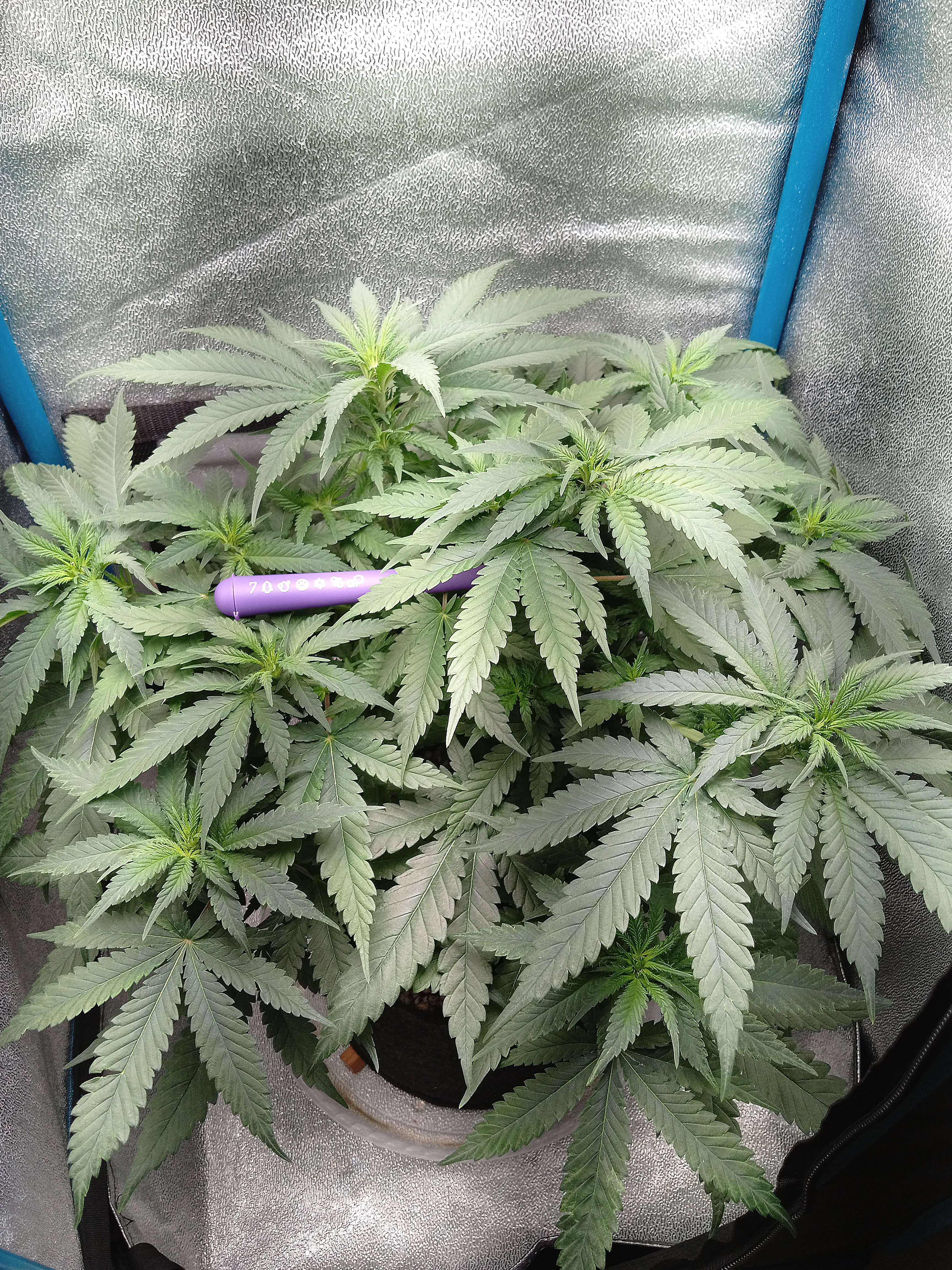 Здорово 🤟 пипл. Давно надо было это сделать , обдербанил крупных лопухов штук 10-12, сука хоть задышала, а то бокс открываешь, а оттуда духан горячий, запашистый валит. 30 температура , 35 влажность была, задыхался кустикус. Сейчас гораздо комфортнее стало, хоть некоторые ветки освободились от бремени, воздух вентилируется лучше, да и в целом , беда с этими лопухами, прут и прут. Обрываешь, растут, забадали. Места мало, ну кто знал, что вот так получится. Пойдет, едем дальше.
