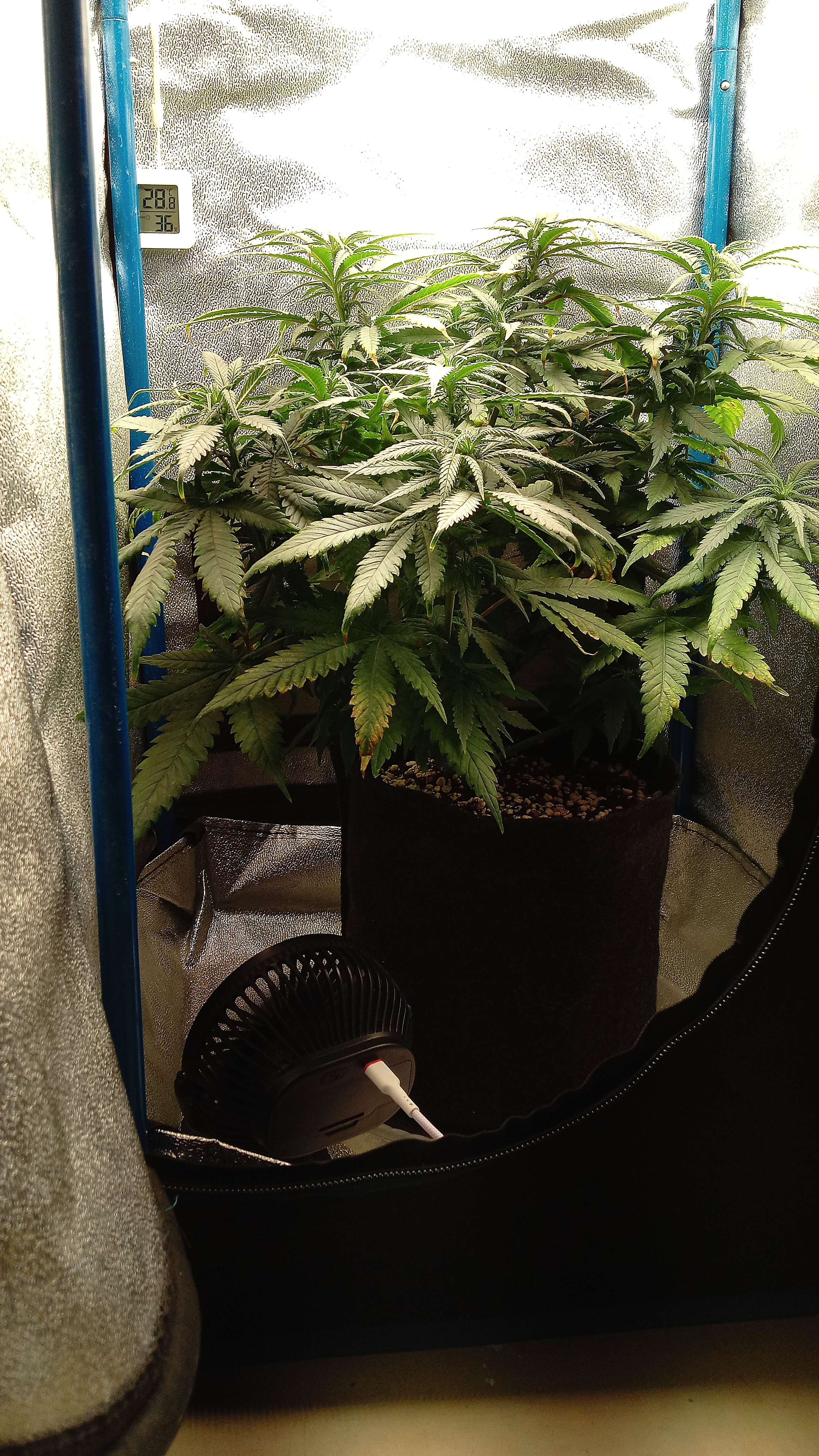 Растиха нуждается в каждодневном поливе,наверно начинала с лопухов запасы питания тянуть и ещё закислённость почвы скорей всего тоже. Но сейчас строго по ph метру и ppm метру соответственно. Да отойдёт, никуда не денется. Туда дальше, попозжа, как окончательно выйдет на цвет, лопухи надо будет прорядить. И вентилирование в боксе будет получше,хоть полегче задышит, и сам внешний вид в порядок растихи приведу... Как то так 🤷...