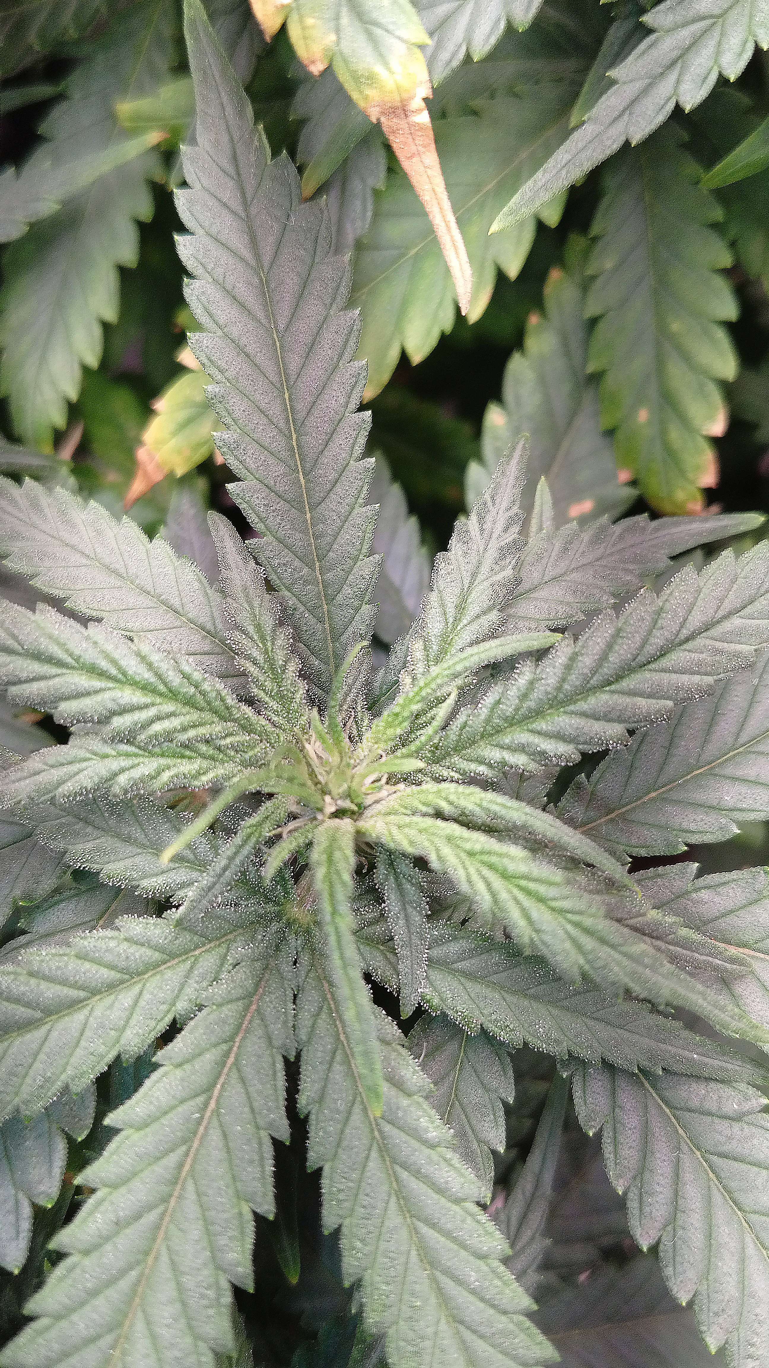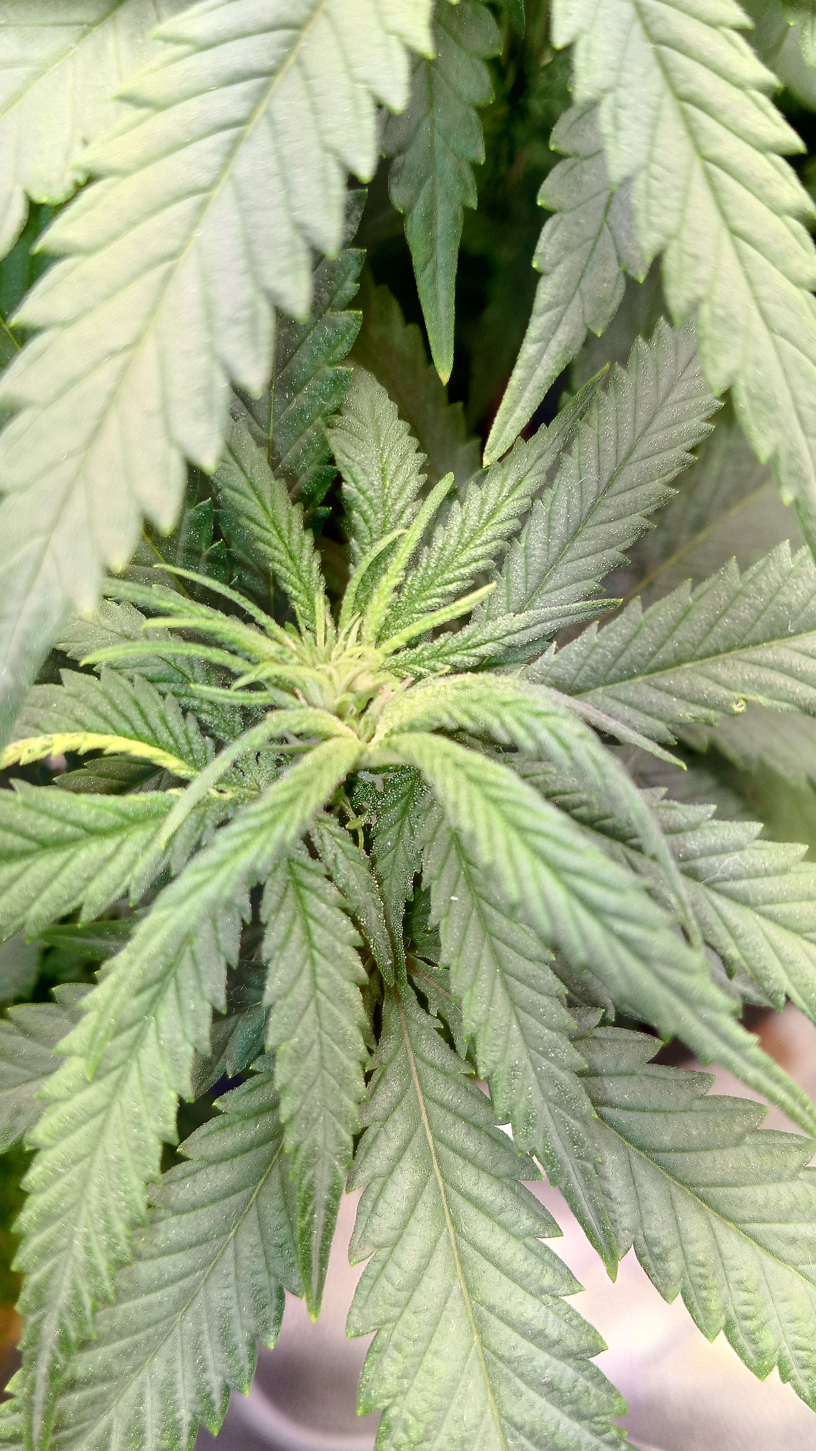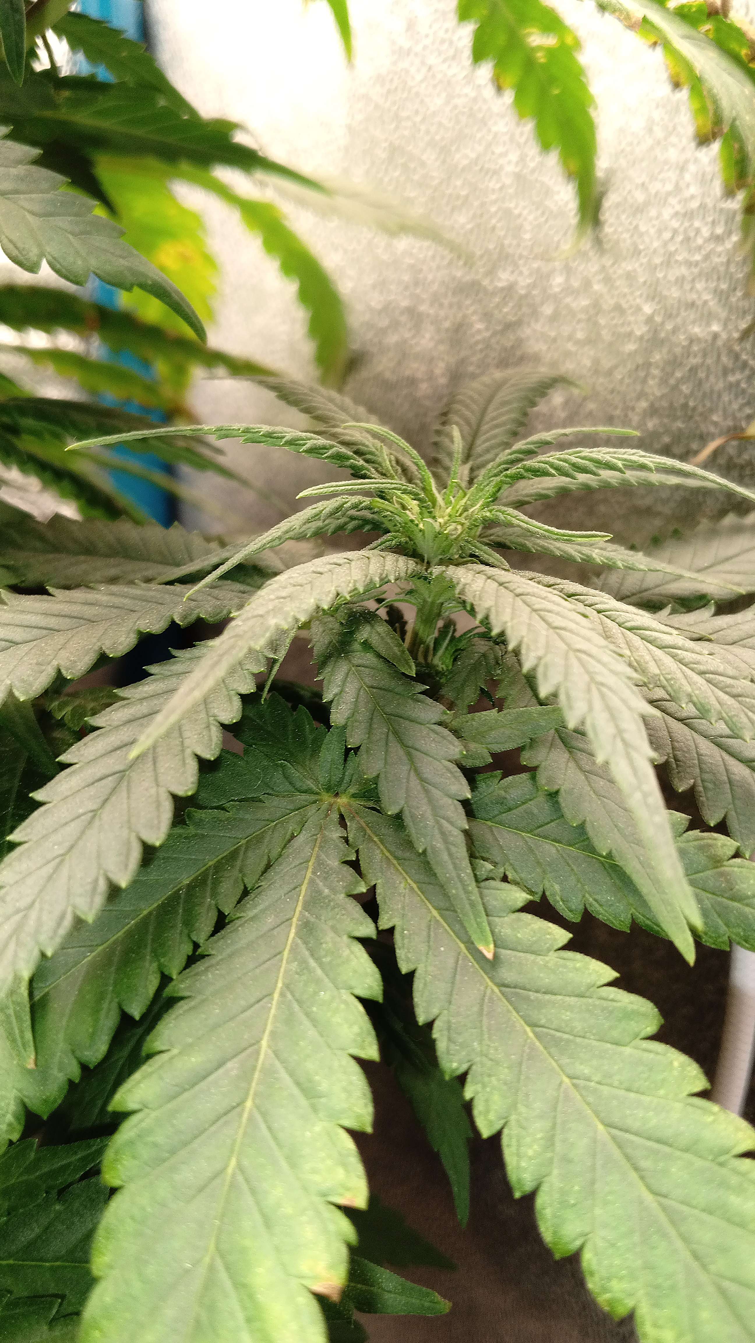 Хаюши пипл! Горшок слегка влажный после вчерашнего полива , в принципе нормально.Пролил 0.5 литра с ph 6.6, ppm 750. 100% ТриПарт на цветение , и ещё добавил 0.5мл.Калмага.Лампу поднял на 10см, пора уже к верху ☝️ тянутся. Пока всё на сегодня.