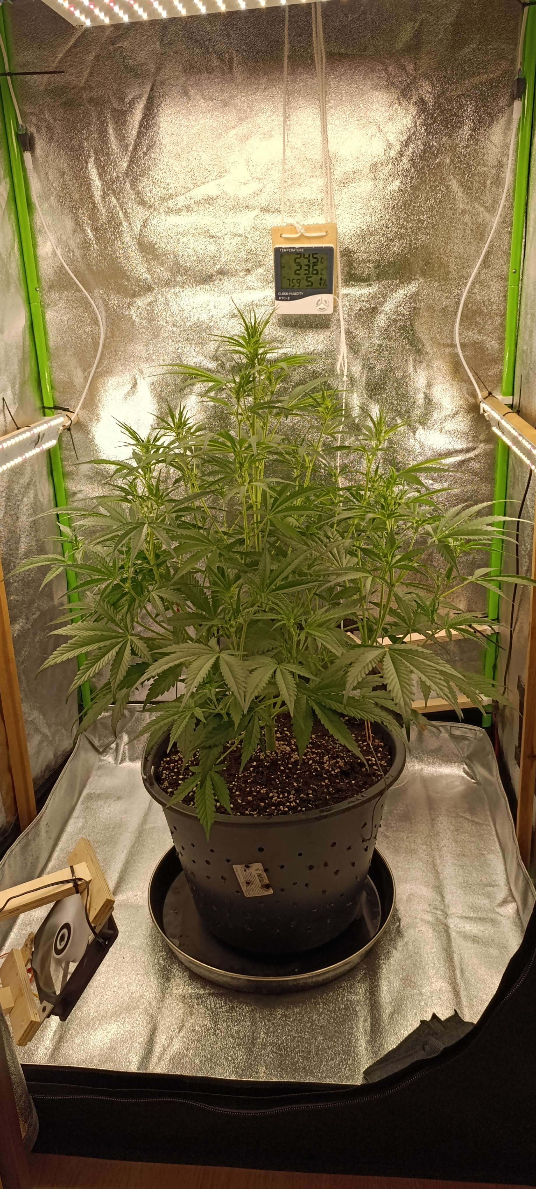 Через 24 часа горшок заметно полегчал, сделали три литра компота. Прасковья не возражала. Дренаж 100 грамм. Аппетит отменный. Свет 30000 Lux. Готовится зацвести. Следующий полив по первой неделе цветения.