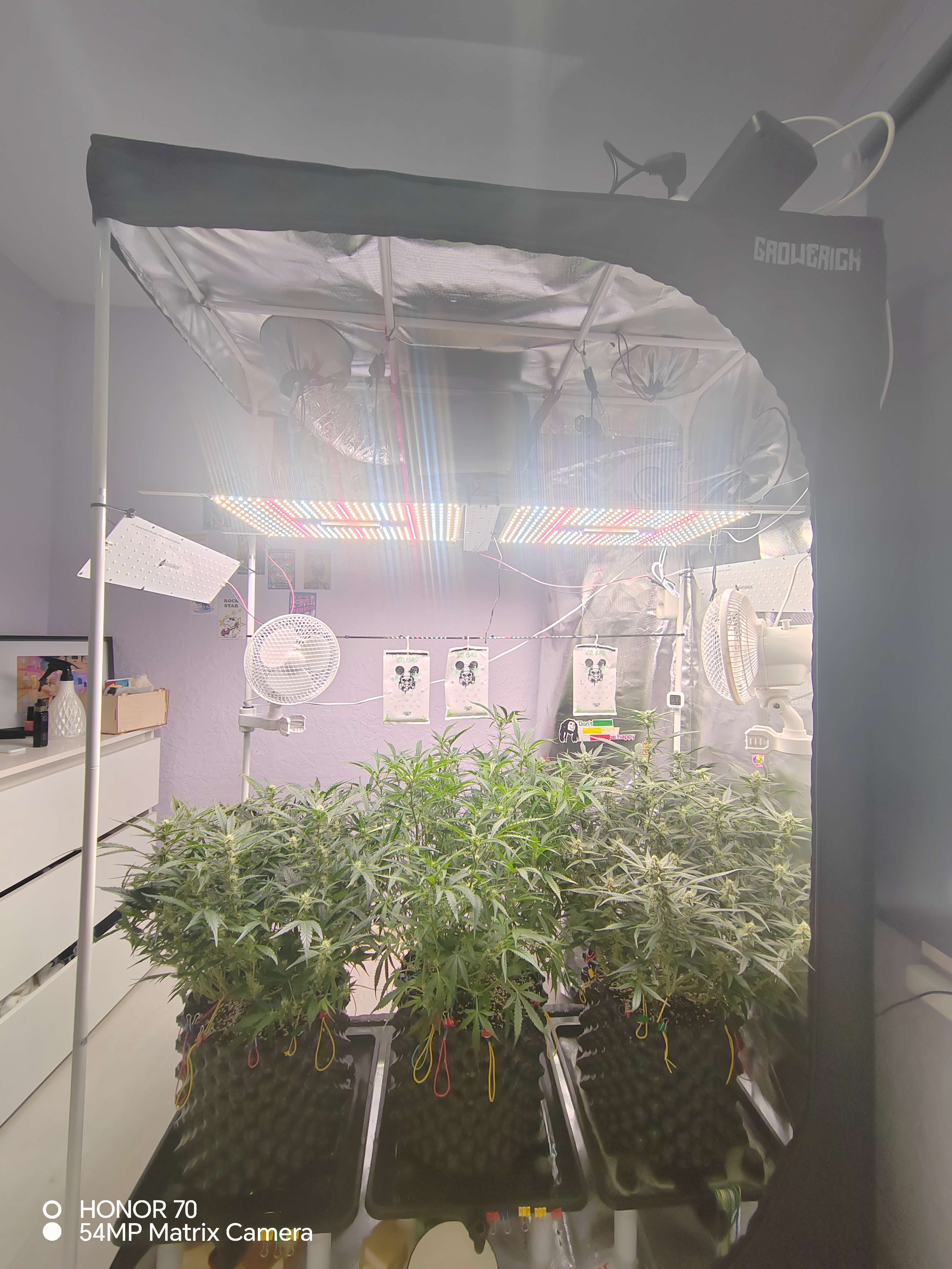 Началось,последствия засола. Дэфецыты всего наверно🤦завтра буду полностью устранять засол, выранивать ppm и ph. Средний куст наконец начал цвести. Места в палатке катострофически нехватает. Ладно всё это будет мне опытом...