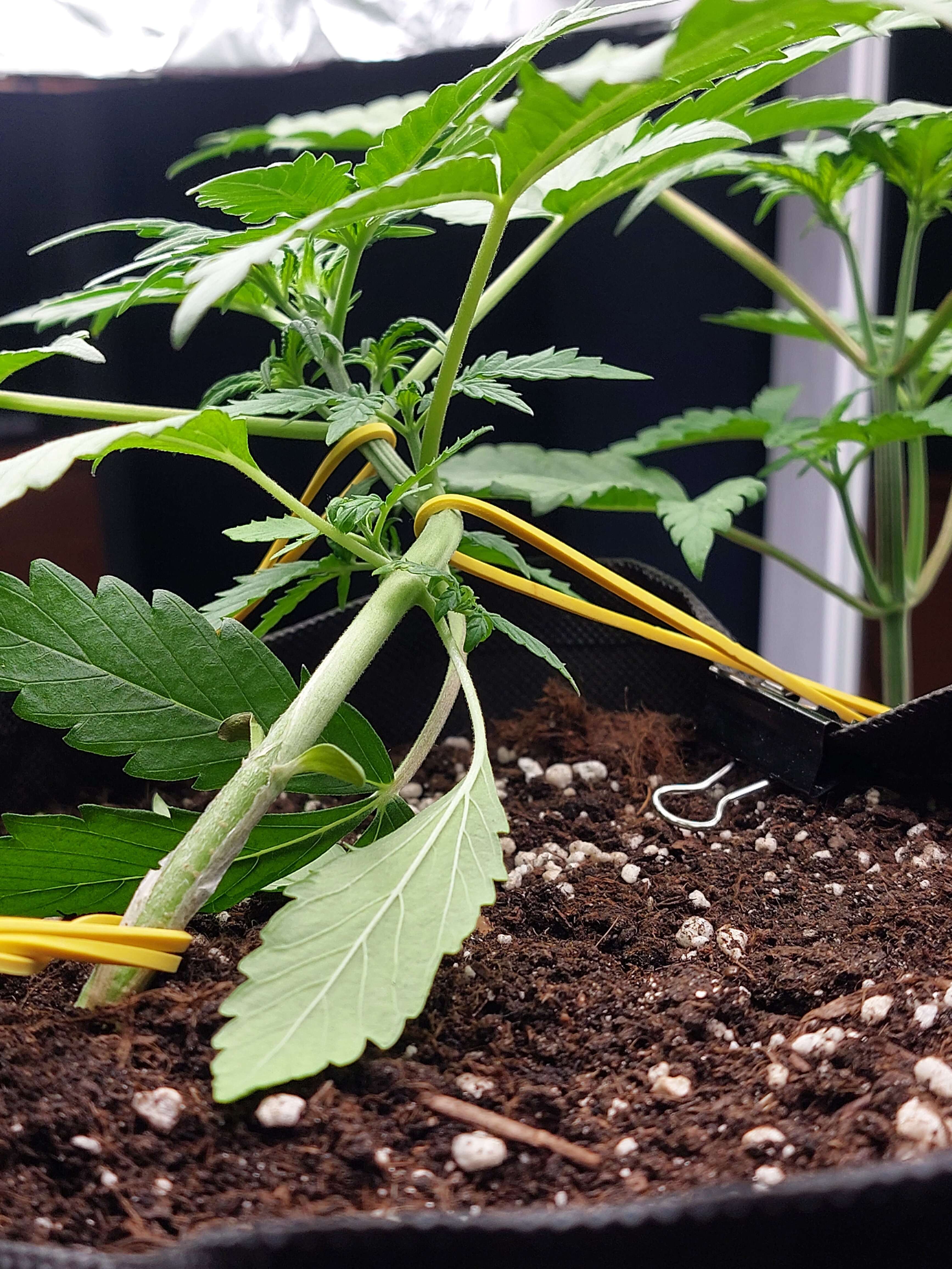 На этой неделе перевёл растих с классики на лаундж. Танцуют листочками под вентилятором укрепляют корни и свои тонкие стволы. Прям деревянеют в основании. По причине экстремально высокого роста, старшую топнул на 16 день(!), оставив 3 этажа. Она даже не приуныла. Уже видим 2 новых стебля. Младшую на 16 день погнул и довольно смело (думал, при таком изгибе сломается ствол), а она только листочки вверх и опять танцевать на ветру - вот это генетика