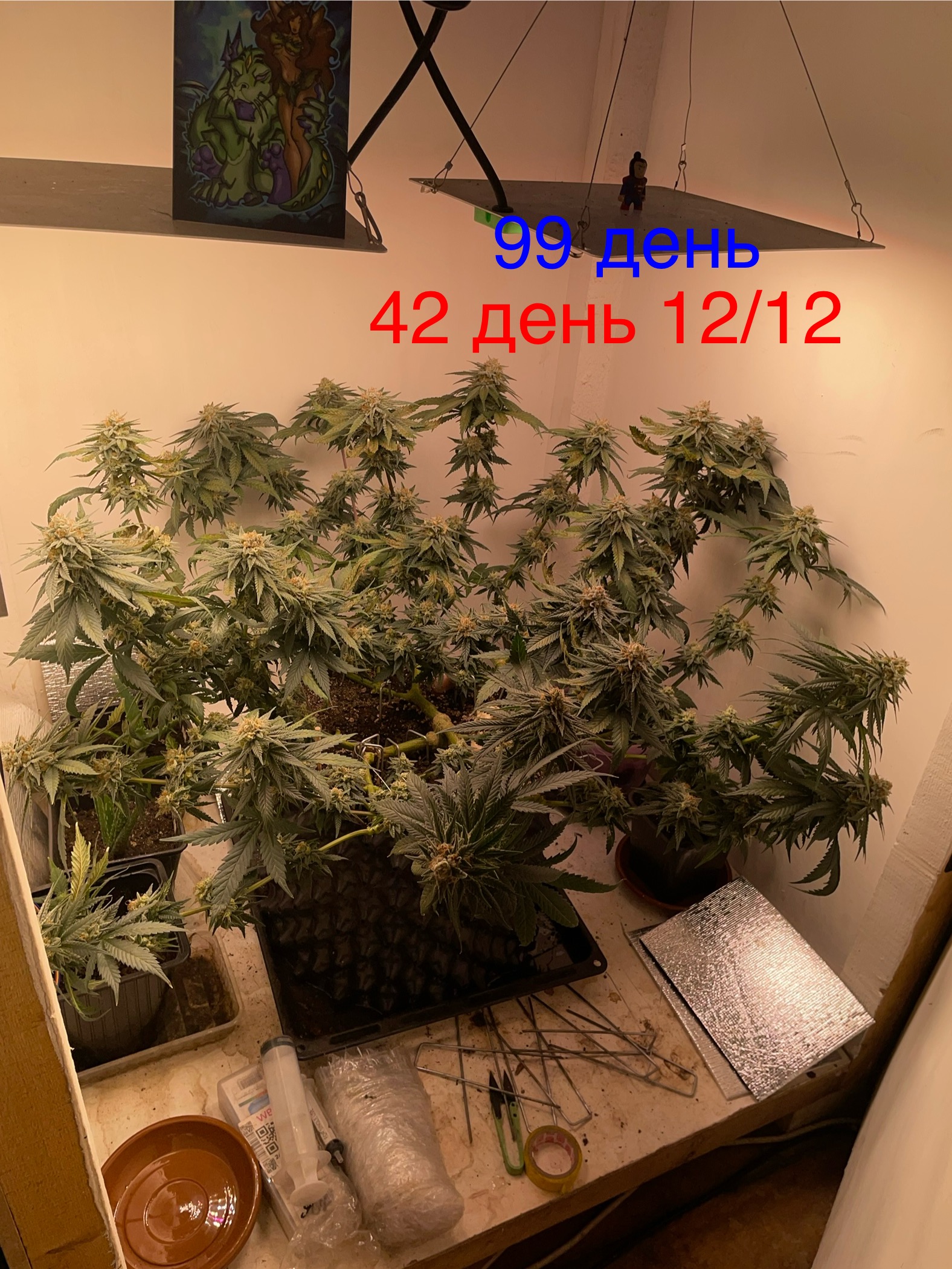 Моторке только цвета 70дней, а так 150 + -, там пиздец,, тёмно-коричневые даже есть трихомы и %10-15прозрачные,остальные все молочные и янтарных % 15 как одна, красивое зрелище, сфотать ещё неполучаеться но смотрю постоянно, крутая шмаль, шишки хлеще химаря вставляют, а есле чистого химаря заварганить то вкуснятина многогранная по вкусу и хичь - стоун на 3ху часиков такой ощутимый, я доволен лично... (своим же трудом)