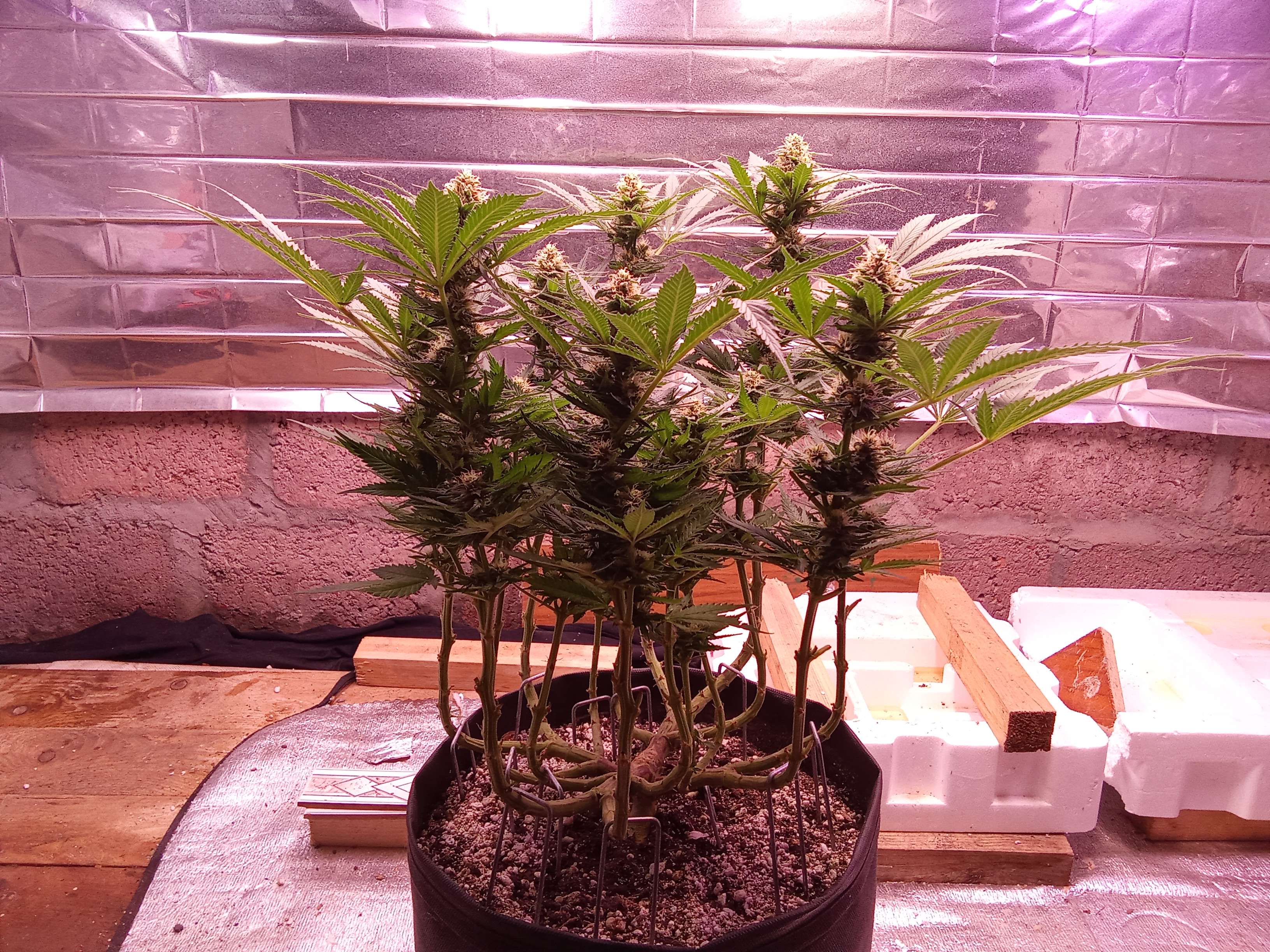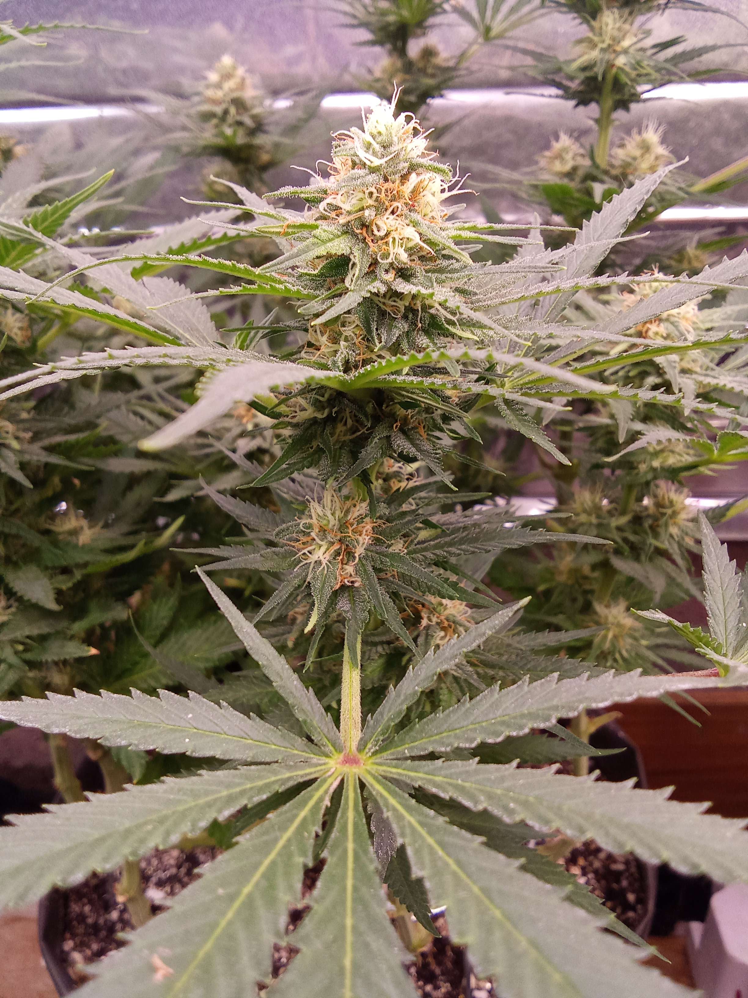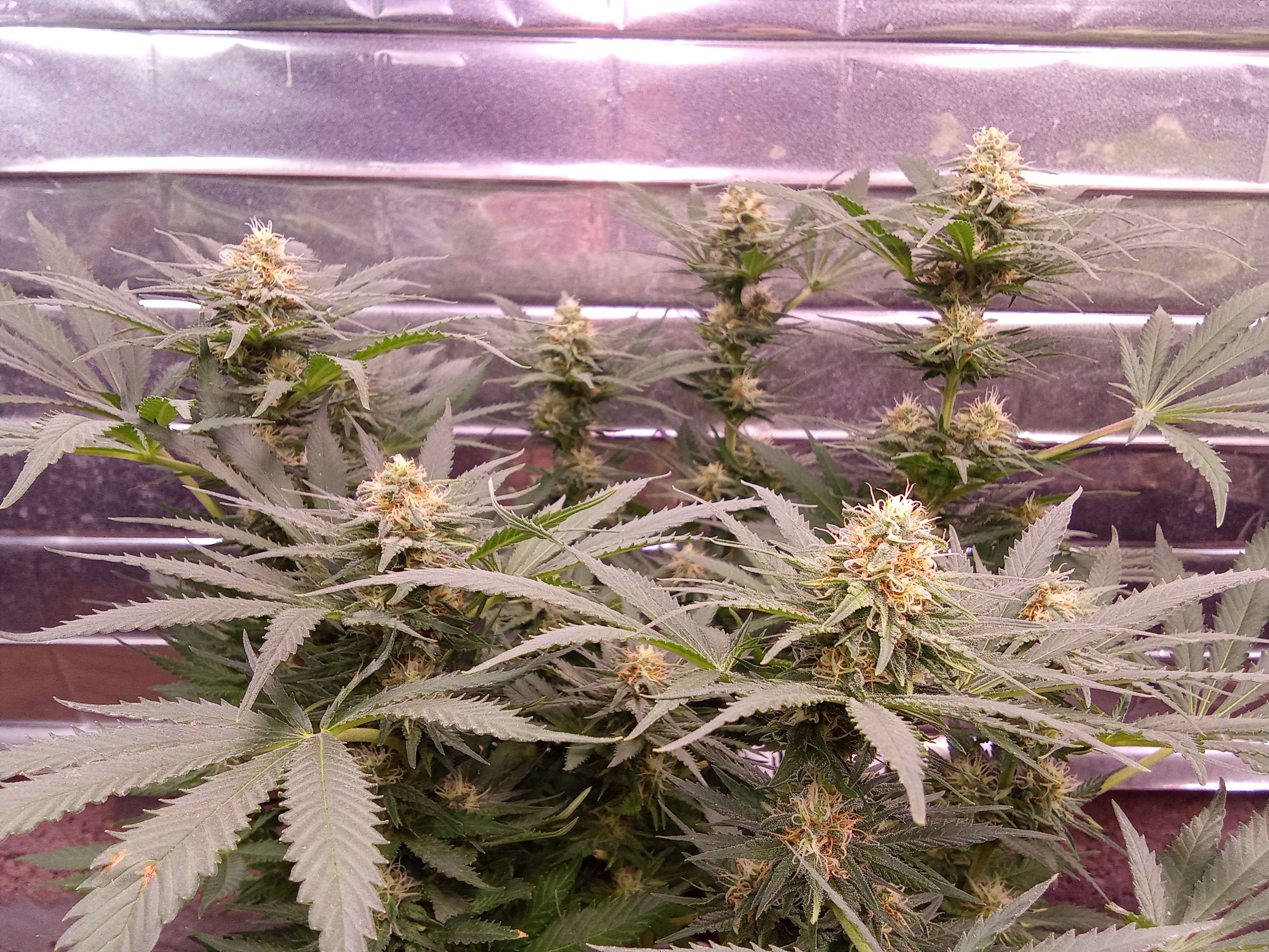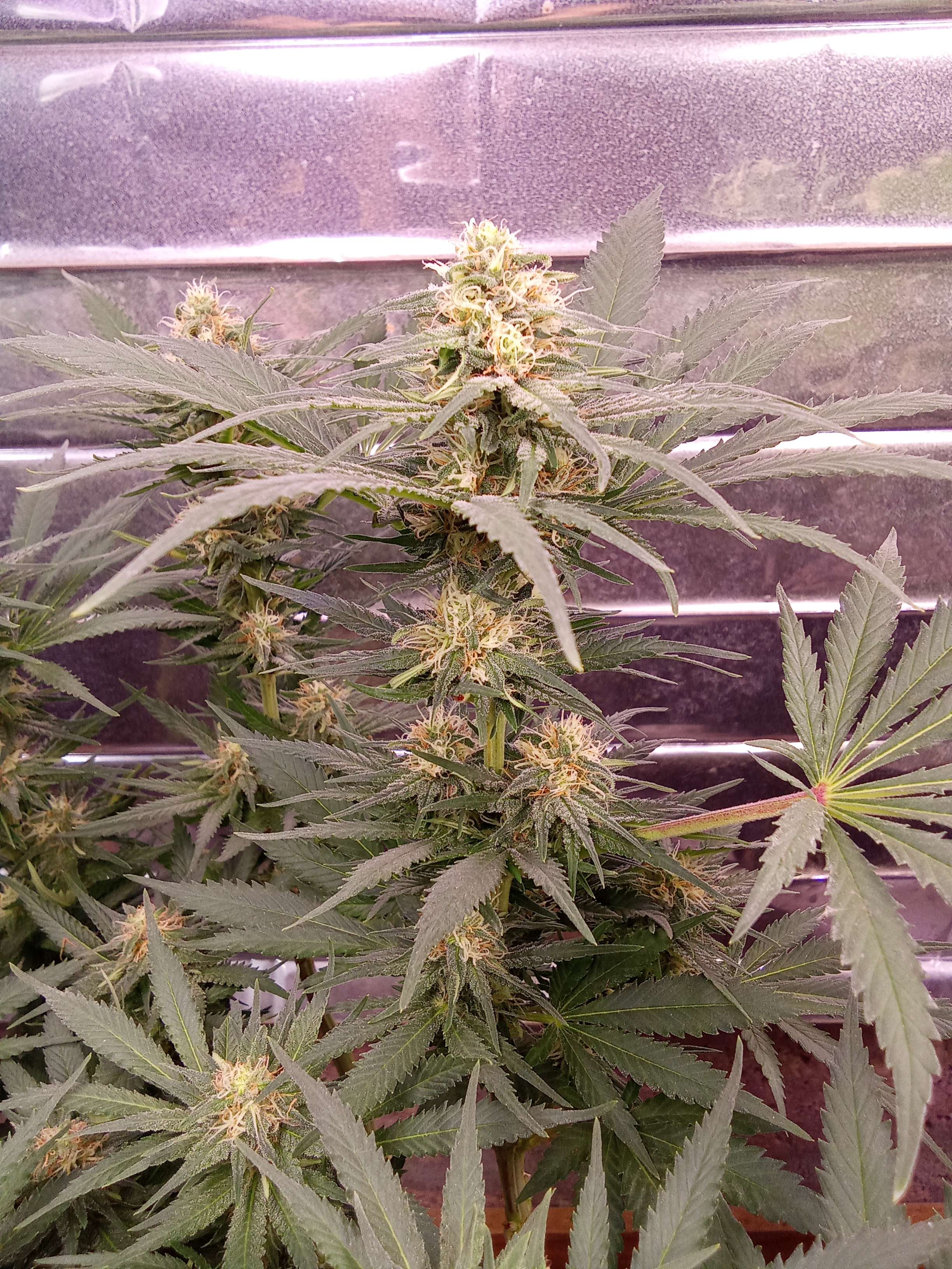 Здравствуйте, мои хороши! Не успели соскучиться? Как-бы то ни было, выкладываю промежуточный доклад о ходе грова Яблочной Бетти) Нам сегодня 81 день от роду, и идет 18-й день цветения. Полив по графику должен был быть вчера, но померив влажность в грунте, я решил на день отложить, что бы грунт просох, и корни получили свежего кислорода, да и отдохнули немного от воды... Сегодня выпили 3 литра чистой водички, вот и весь уход) С приездом кондера в боксе стало гораздо приятнее, (хоть заходишь не как в сауну) темпа за бортом +32-34, в боксе у нас 25-27, влажность около 60, что очень даж не плохо)